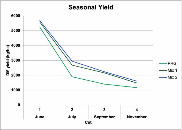 - Multi-species swards can produce similar DM yields to perennial ryegrass swards at significantly lower rates of inorganic N fertiliser. This could be worth up to 5 bags of CAN/acre.